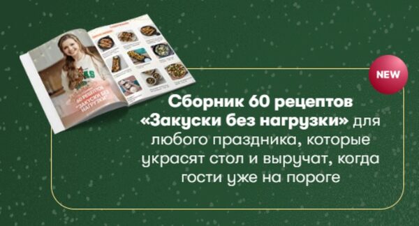 Да, Вы можете получить получить бесплатно фрагмент курса «Сборник закусок для праздничного стола Закуски без нагрузки», просто напишите на почту или в телеграм