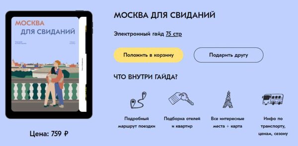 Гайд, с которым ты точно полюбишь зимнюю Москву. Внутри 4 части, в первой из них 4 прогулочных маршрута. Гуляя по ним, перенесешься в 19 век, когда по Москве на санях разъезжали барыни в мехах, и окажешься в современной Европе с ее рождественскими ярмарками. Третья часть — про развлечения для детей