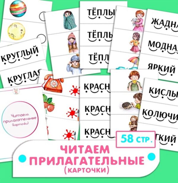 Ульяна Скубилова «Набор карточек Читаем прилагательные» — Развивайся и играй вместе с Вулькой слив скачать