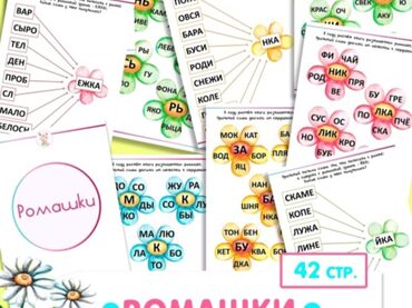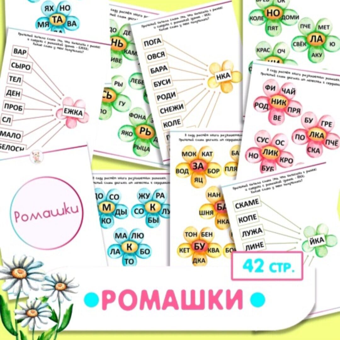 В НОВОМ СБОРНИКЕ разноцветные «РОМАШКИ» мы составляем и читаем слова, которые разделены на две части, двигаясь от лепесточка к сердцевине, или наоборот от сердцевины к лепесткам Данный сборник станет прекрасным тренажером не только для детей, кто уже умеет читать небольшие слова; но и для тех, кто еще учится читать