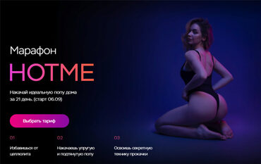За 21 день ты: Избавишься от целлюлита Накачаешь упругую и подтянутую попу Улучшишь форму ягодиц, освоишь секретную технику прокачки Сохранишь тонкие ноги Тариф Минимальный 1 490 руб. ~560 грн. 17 тренировок для ягодиц Гайд по борьбе с целлюлитом Антицеллюлитный комплекс