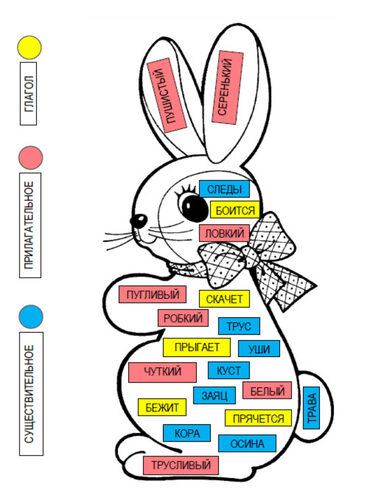 Обучающие раскраски по теме «Части речи». Пособие предназначено для автоматизации навыков определения частей речи в игровой форме. Комплект состоит из 10 рабочих листов. На каждом рабочем листе рисунок животного и слова-ассоциации. Ученику необходимо поставить к словам вопросы, определить часть речи и раскрасить фон слов в соответствии с маркерами. Маркеры адаптированы под чёрно-белую печать: около каждой части речи есть кружочек, который дети раскрашивают перед началом работы - определяют, какого цвета должна быть каждая часть речи. Делайте маркеры разными на каждый рабочий лист - это здорово тренирует избирательность и переключаемость внимания!