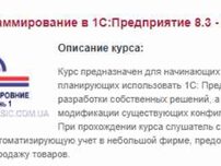 Курс предназначен для начинающих разработчиков, планирующих использовать 1С: Предприятие 8.2 для разработки собственных решений, а также для модификации существующих конфигураций.