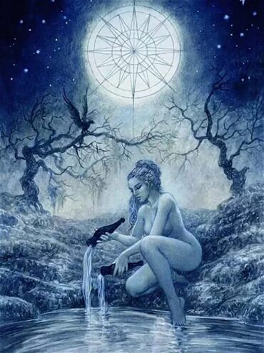 17 аркан «Звезда» - это первый горизонтальный аркан, коих всего в Дереве три — 17-й, 9-й и 4-й арканы. Эти горизонтальные арканы представляют собой как бы ступеньки, взяв которые, человек лишается возможности упасть вниз. Это три этапа, три уровня, три опоры, которые называются Посвящением Магов.