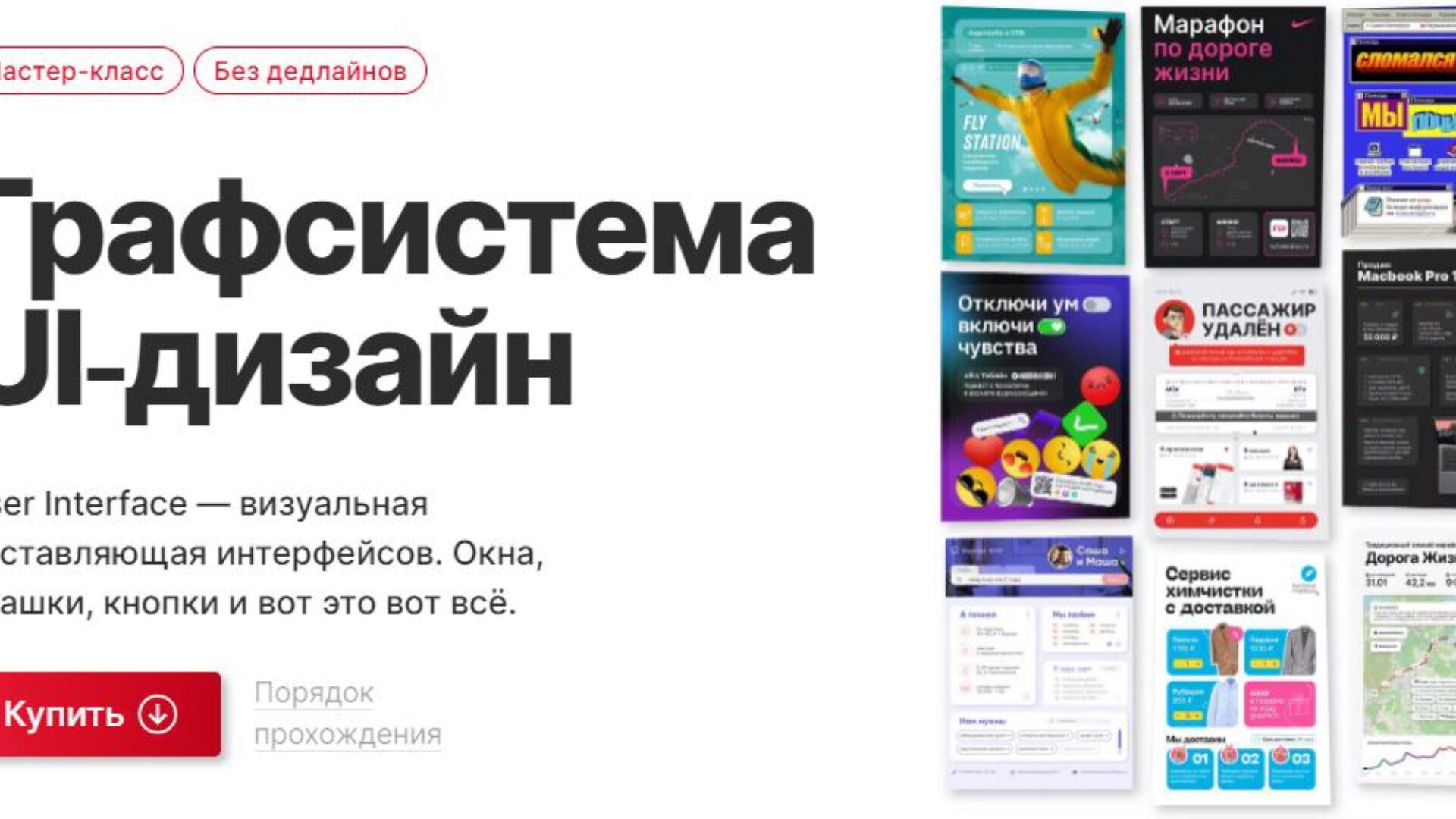 В отличие от UX, в котором мы проектируем логику, UI отвечает за визуальную составляющую интерфейсов. Окна, плашки, кнопки и вот это вот всё. То, ради чего строятся дизайн-системы. Изучая UI мы подойдём к нему как графические дизайнеры — нарушим границы интерактивных правил. Поймём, что над современными интерфейсами можно шутить и иронизировать, переводя их в плоскость статичных макетов графдизайна. Это отдушина для тех, кто занимается серьёзными диджитал-продуктами.