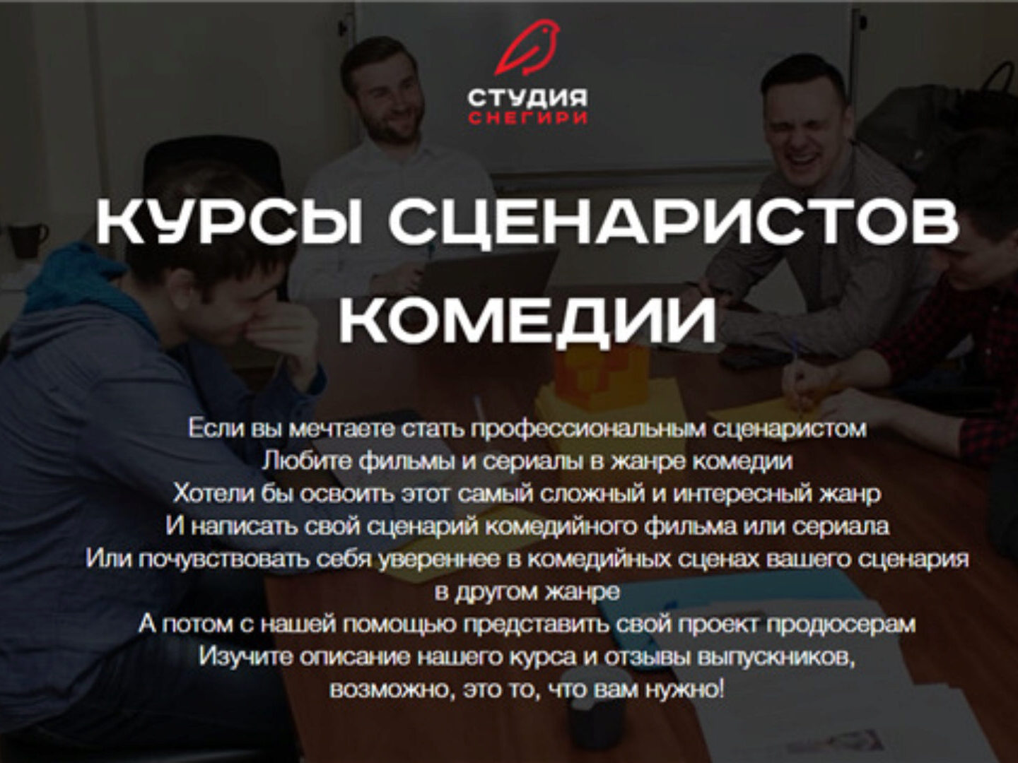 snegiri-studio - Курсы сценаристов комедии. Как написать комедию.«Стандарт». 2017, автор Вадим Комиссарук. Курс от авторов сериалов кухня, восьмидесятые, даешь молодежь
