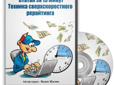 Урок 1. Сверхскоростной рерайтинг: теория. В этом видеоуроке я расскажу Вам, какие трюки можно использовать для быстрого рерайтинга статьи. Урок 2. Сверхскоростной рерайтинг: практика. Здесь я наглядно продемонстрирую все эти трюки, каждый из них по очереди применив к одному текстовому фрагменту. Урок 3. Делаем рерайт статьи. В этом видеоуроке я буду на Ваших глазах, в режиме реального времени, рерайтить случайную статью, скопированную из Интернета. Естественно, при помощи техники сверхскоростного рерайтинга. Урок 4. Как выбрать статью для рерайта? Очень важный урок, в котором я подробно расскажу, какие статьи лучше выбирать для рерайтинга, чтобы в дальнейшем их можно было продать быстрее и дороже. Урок 5. Оптимизация процесса. Заключительный видеоурок, из которого Вы узнаете, как правильно наладить свою работу, чтобы тратить минимум времени на весь процесс заработка. Бонусное видео. Чтобы зарабатывать, мало умения быстро создавать статьи. Нужно еще уметь их продавать. Я расскажу Вам о пяти способах, которые помогут Вам повысить скорость продажи статей в несколько раз.