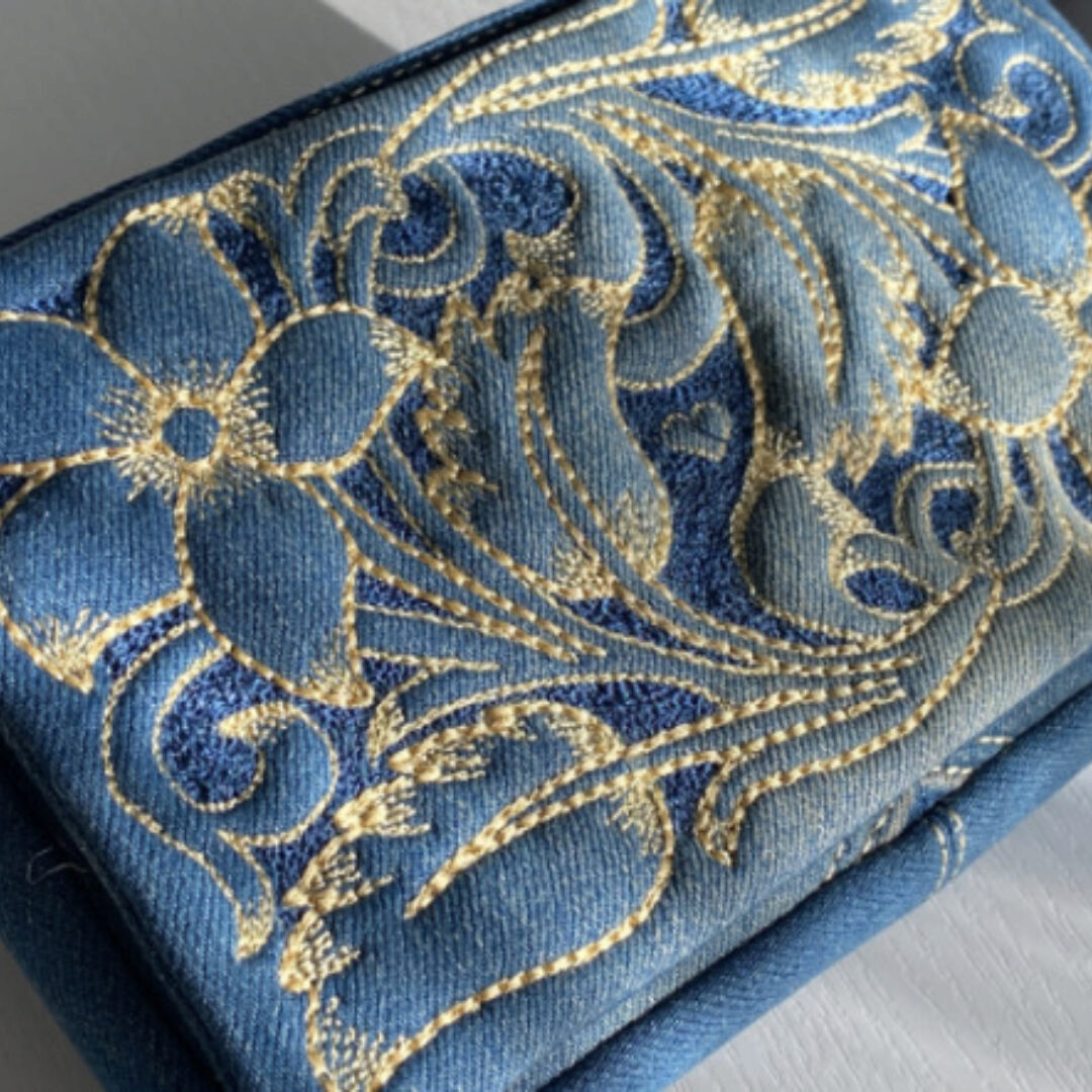 Лёгкая, изящная, маленькая и приятная на ощупь, с завораживающим объёмным рисунком на джинсовой ткани – она украсит ваши дни и особенные вечера.