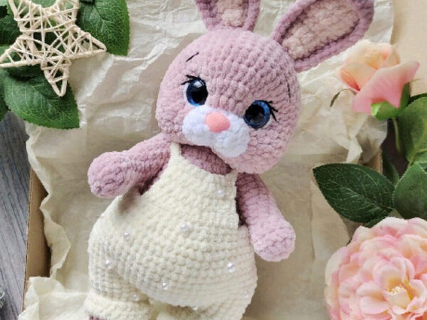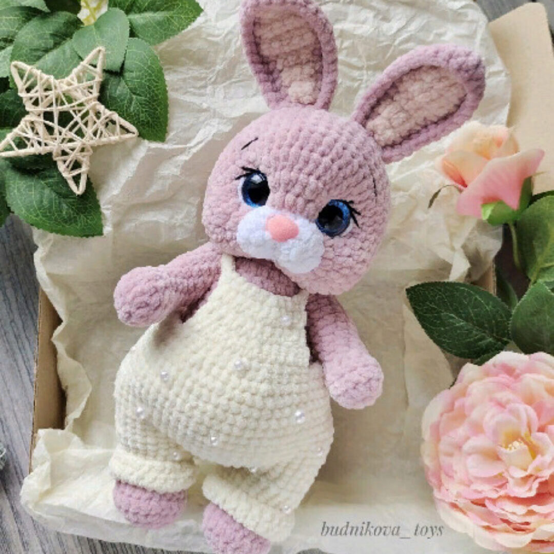 МК в формате PDF Крольчонок вяжется за пару часов. Из 1 моточка получится 4 игрушки. Голова, тело, лапки и хвостик вяжутся одной деталью, без отрыва нити. Пришиваются только ушки