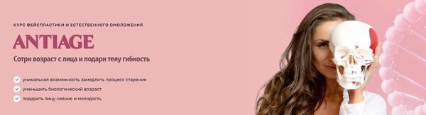 3 видео-лекции: «Череп: строение и влияние на лицевые мышцы и ассиметрию», «Лицо: как появляются морщины и происходит старение», «Antiage: питание и коррекция образа жизни для максимального сохранения молодости»