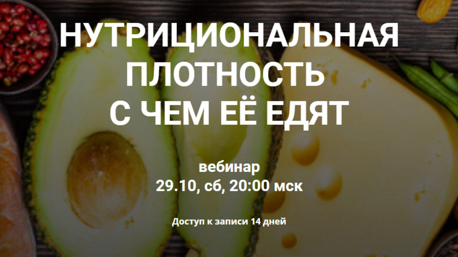 Подавляющее большинство читающих этот текст даже и не подумают потратить 600 рублей на субботний вебинар «Нутрициональная плотность - с чем её едят».