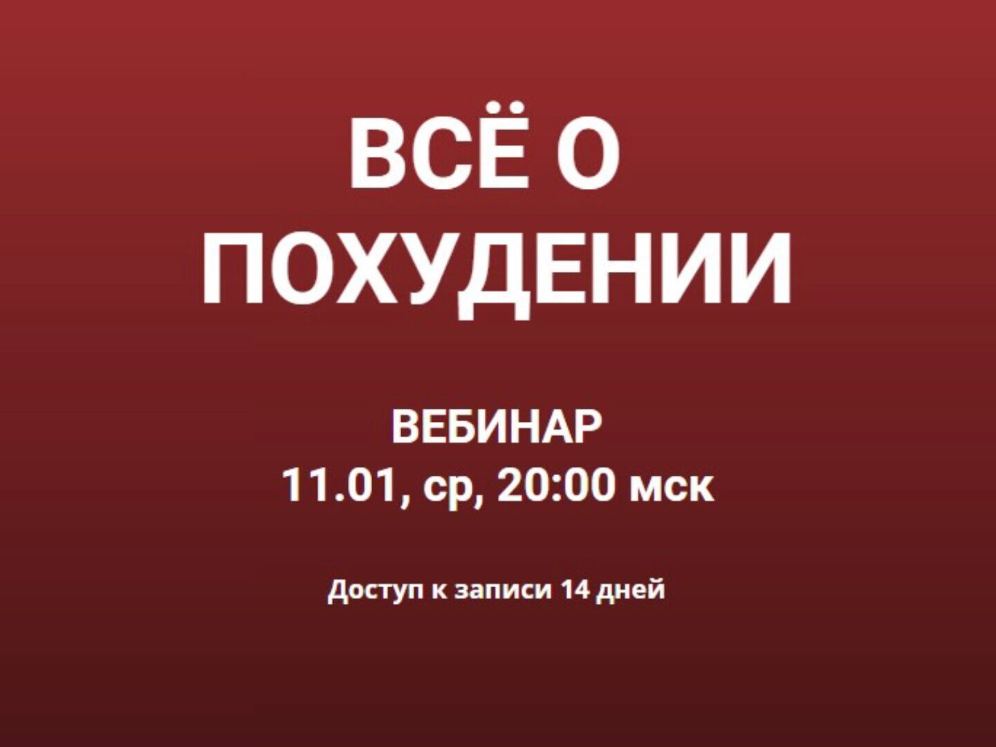 О чем вебинар: 1. Подъём и основные пункты гигиены сна. 2. Утреннее кардио - есть ли смысл. 3. Стоит ли завтракать - интервальное голодание для похудения. 4. Обзор групп жиросжигателей и добавок для похудения. 5. Метформин и трулисити - как правильно? 6. Формирование рациона - считать ли калории.
