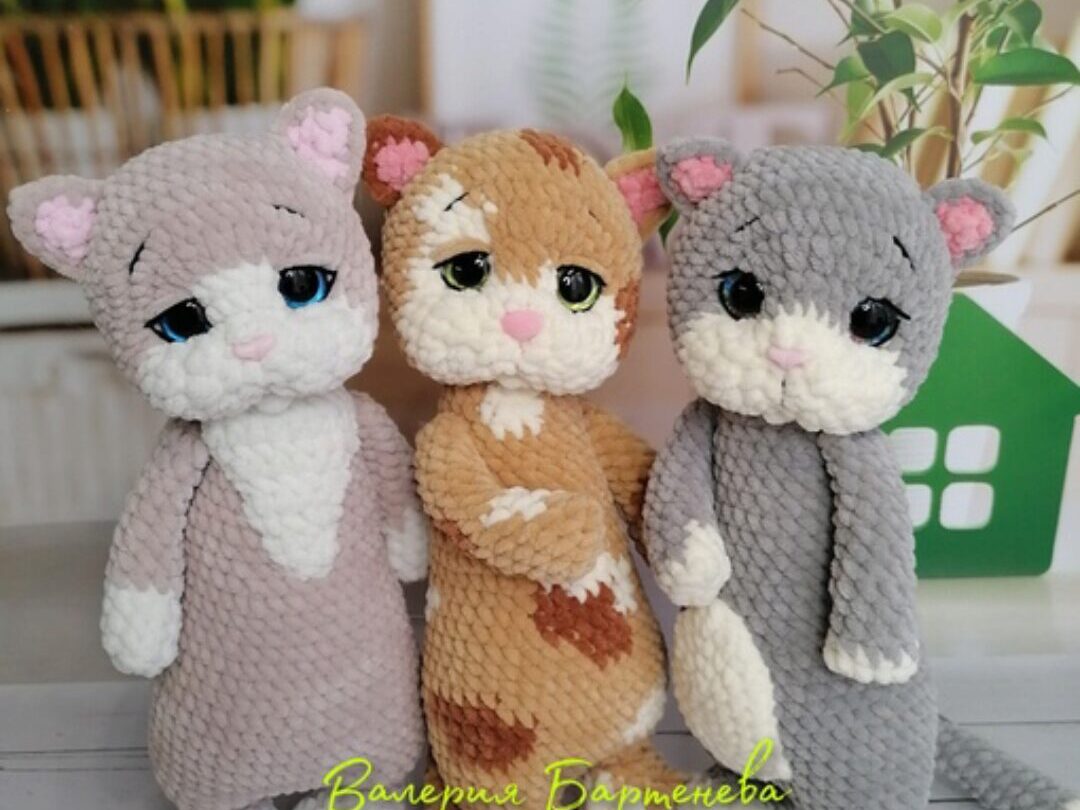 МК котики Крошки находится в закрытой группе. МК состоит из текстового описания процесса вязания игрушки и видео по основным моментам. Видео к МК записаны прикреплены записью экрана с закрытой группы ВК. При использовании указанных материалов, рост игрушки около 23см без учёта ушек. В описании так