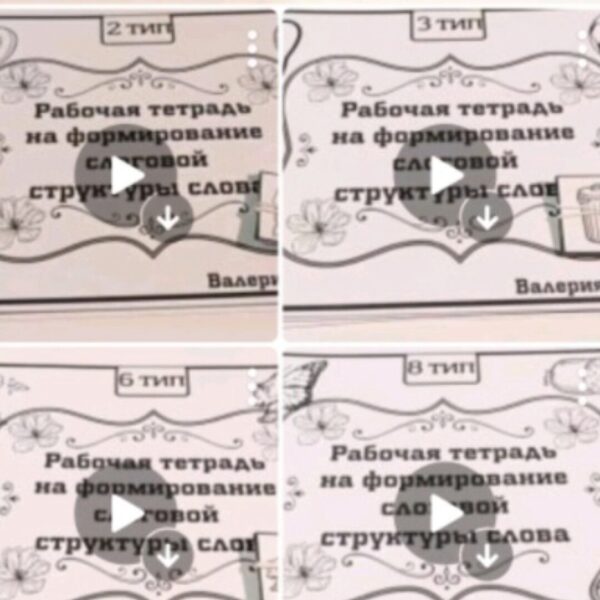В комплект из 9 пособий на слоговую структуру слова с 1 по 14 тип входит: Игры «Развитие слоговой структуры слова» отработка слов 1-14 типа. Альбом по формированию слоговой структуры слова 1 тип. Комплект «Игры-вертушки» 1-14 тип слоговой структуры слова. Логодом с окошками для отработки слоговой