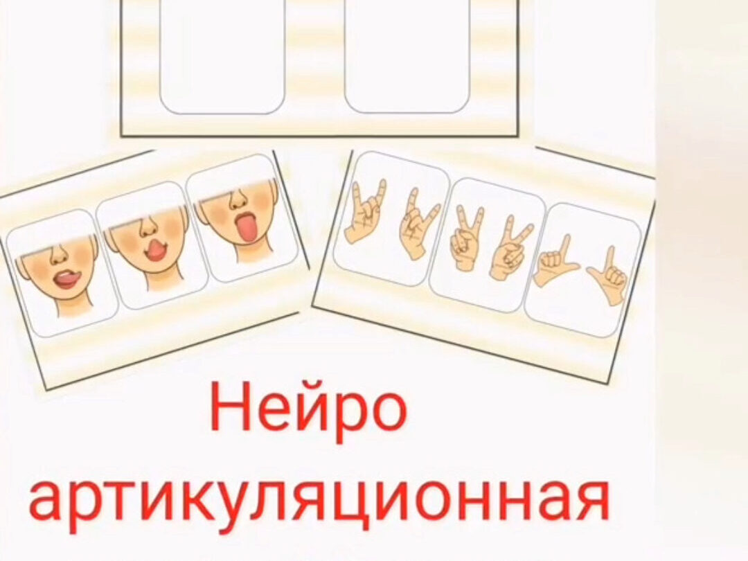 Суть: Ребёнку нужно одновременно повторить артикуляционную позу, и позу рук!