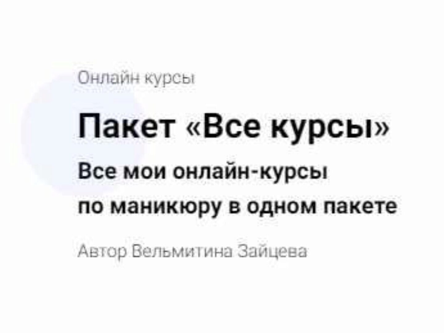 Вельмитина Зайцева Пакет «Все курсы» по маникюру слив скачать