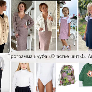 Программа: -Юбка с жакетом для девочек -Платье женское -Кардиган мужской и женский -Жилеты детские трикотажные -Пуховик женский -Конверт для малышей Дополнительные уроки: - Варежки Приглашенные спикеры: • Ксения Гранькова МК «Мешочек для хранения» с вышивкой • Рита Шамаева Лекция В программу