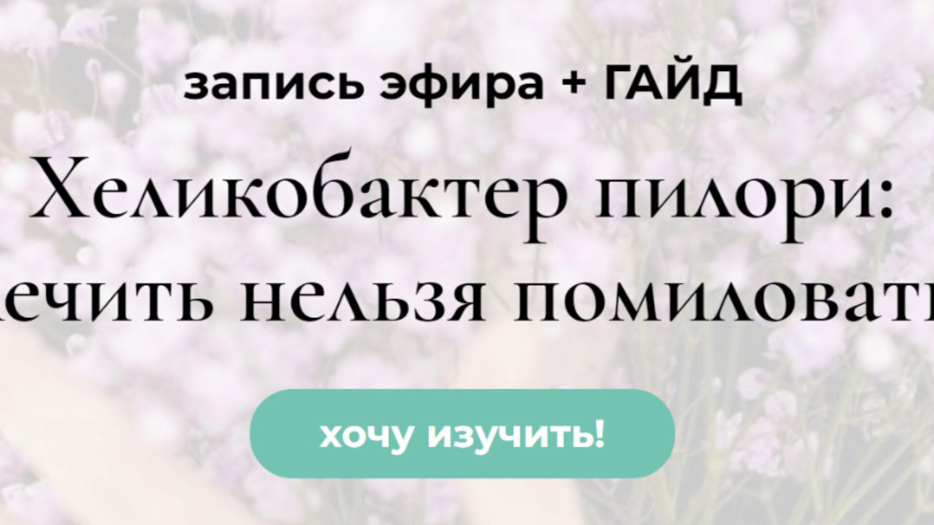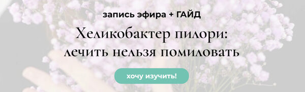 Приобретая Гайд по Хеликобактеру, вы также получаете доступ к записи моего 1,5 часового эфира «Хелик в балансе».