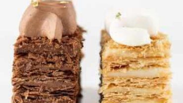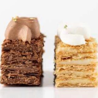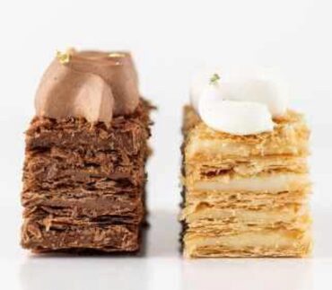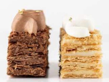 - Наполеон классический: песочно-слоеные коржи, крем-намелака с ванилью на основе белого шоколада
