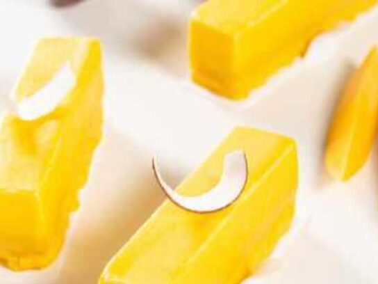 - Нарезка пирожных, покрытых тропической глазурью