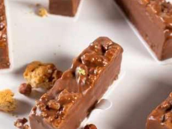 Курс Нарезное пирожное «Ореховый брейк‑данс», автор Вера Никандрова. Нарезное пирожное «Ореховый брейк-данс» - печенье с фундуком, фундучный бисквит, мусс с пастой и пралине фундука, ирис с ванилью, кофейная намелака, шоколадная глазурь.