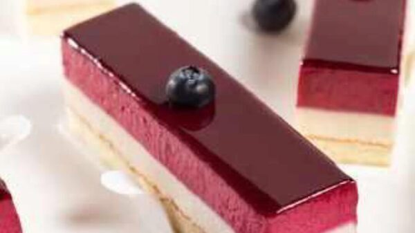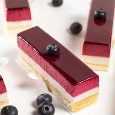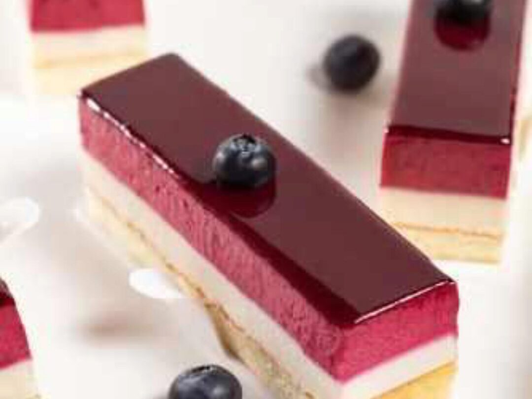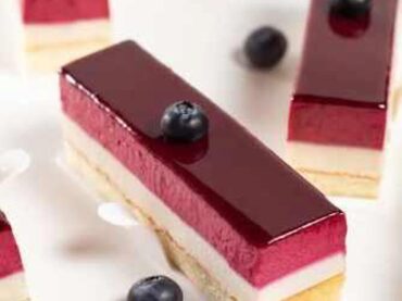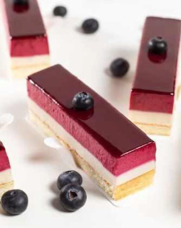 - Извлечение из формы и нарезка пирожных, покрытых глазурью из черной смородины