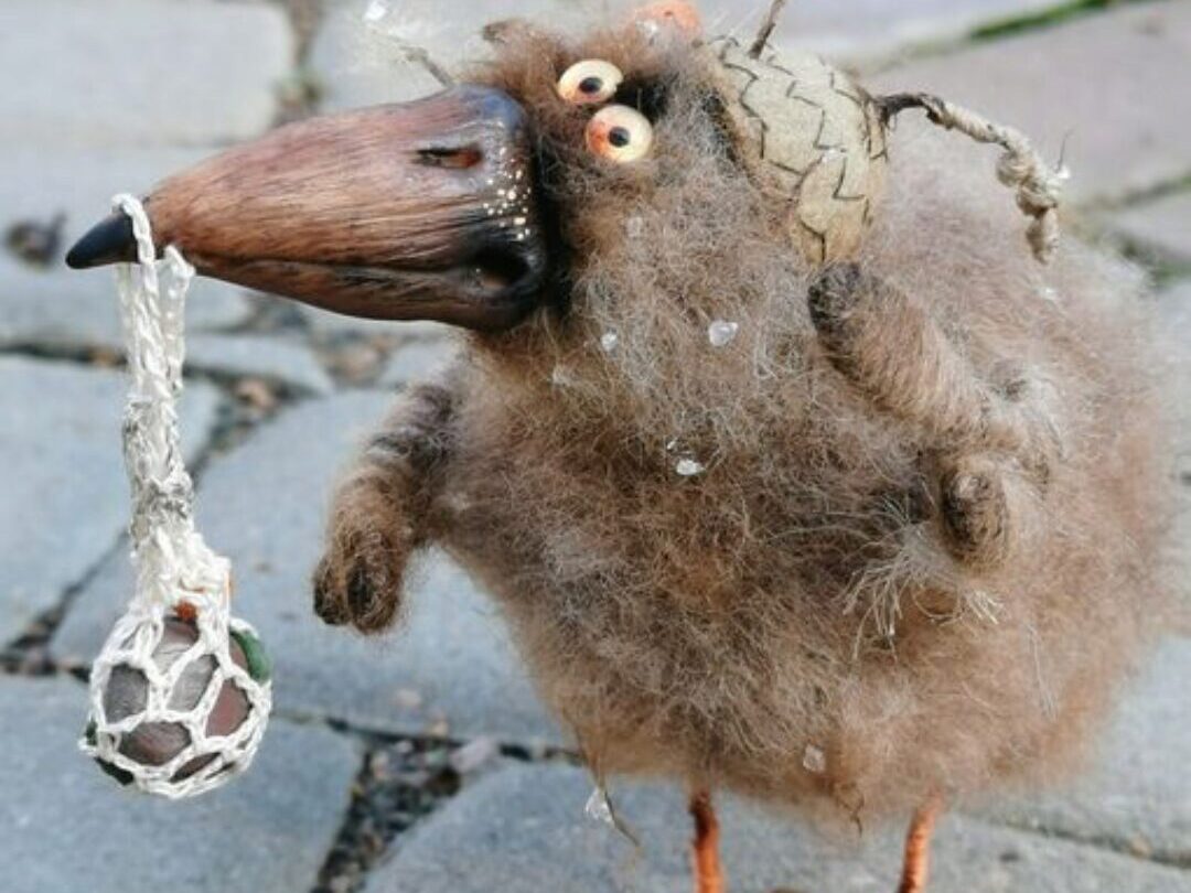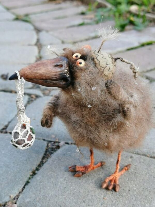 Вязание птицы по эскизу в двух вариантах: с подвижной головой на шплинте и на проволочном каркасе