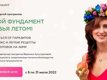 Вы получите: Авторскую программу Вероники Хуснутдиновой, холистического нутрициолога, создательницы магазина биопродуктов NaturoMAMA и Института Нутрициологии. Что в нее входит: Более 40 уроков по Нутрициологии, 7 видео Доступ к урокам и вебинарам на платформе Геткурс 6 месяцев с момента начала