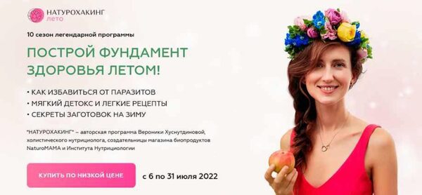 Хотите повысить качество жизни, здоровья и стать более энергичным, жизнерадостным и эффективным? НАТУРОХАКИНГ – авторская программа от Вероники Хуснутдиновой, самого успешного холистического нутрициолога России, создательницы магазина биопродуктов NaturoMAMA и Института Нутрициологии. Возвращение