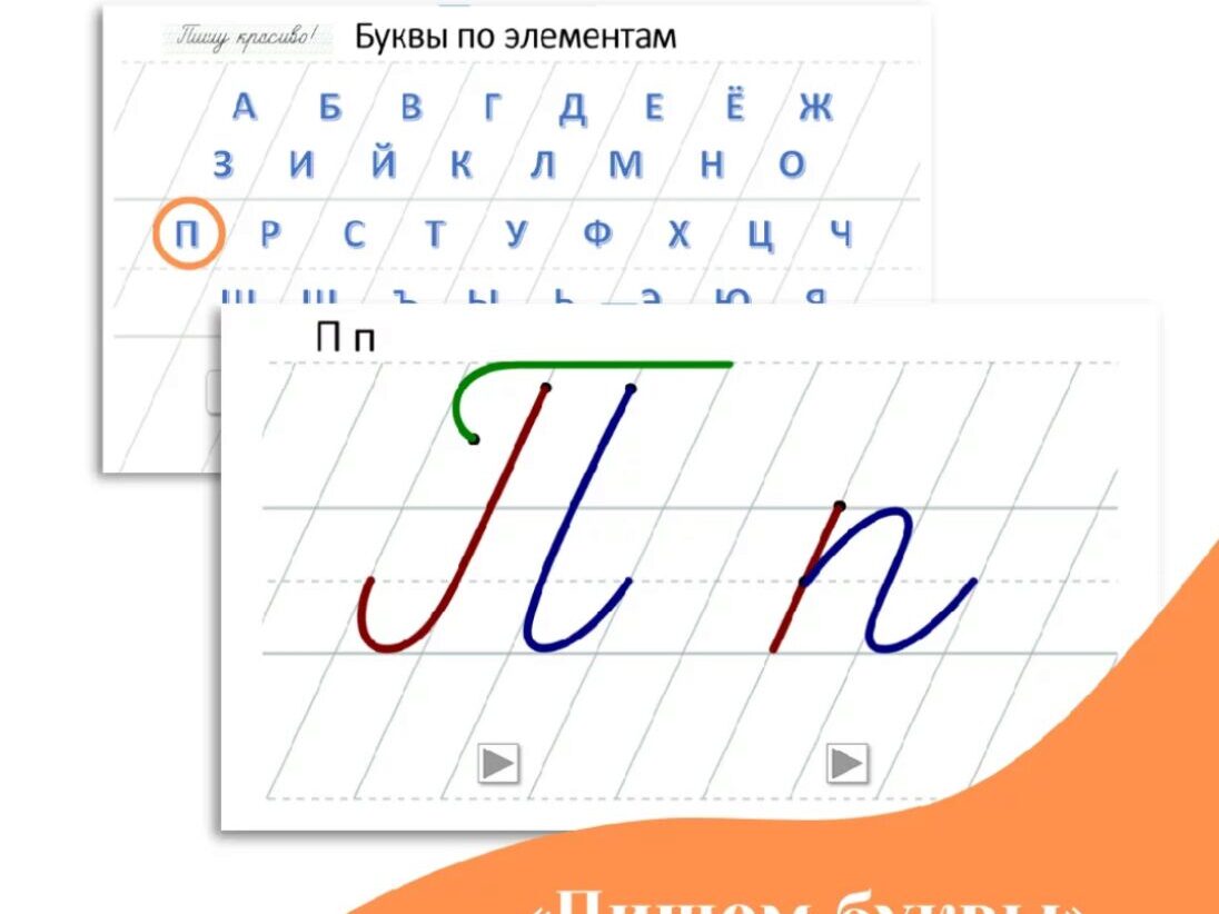 Презентация демонстрирует правильное написание элементов букв и 25 графических узоров. Использование актуально в добукварный и букварный период обучения грамоте, а также на минутках чистописания. Всё управление (запуск элементов, остановки, выбор элемента и узора и т.д.) осуществляется кнопками и