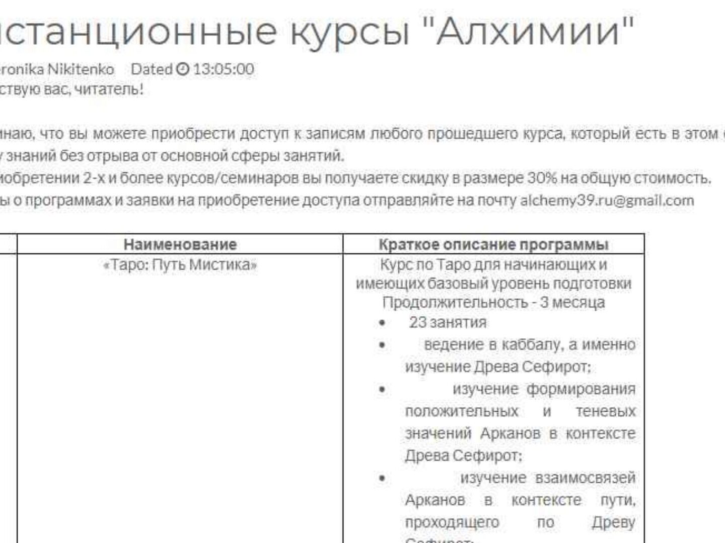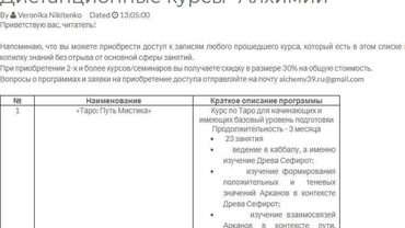 Вы получаете полный курс / тренинг со всеми материалами, но без обратной связи и поддержки автора Вероники Никитенко — именно это позволяет предложить такую выгодную цену. Вы учитесь в удобном ритме, без переплаты за сопровождение.