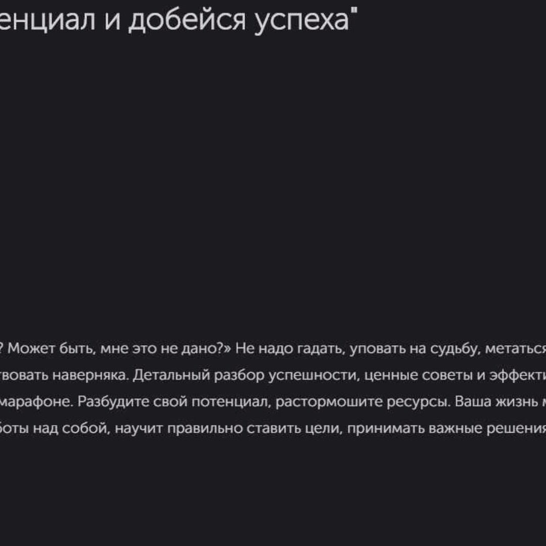 «Как это сделать? Почему я не могу? Что делали те, кто уже добился успеха? Может быть, мне это не дано?» Не надо гадать, уповать на судьбу, метаться в поисках ответов. У науки побеждать есть свои постулаты. За пять часов марафона вы усвоите их и начнете действовать наверняка. Детальный разбор
