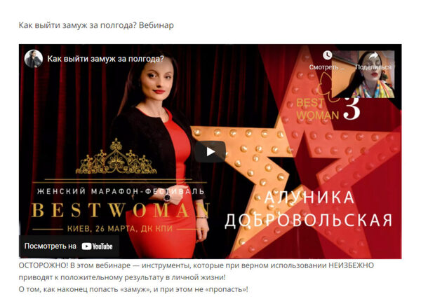 Алуника Добровольская «Как выйти замуж за полгода (Видео+Транскрибация)» слив скачать