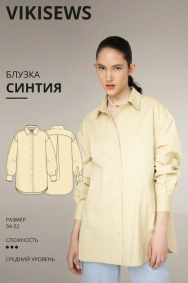 Выкройка будет в двух вариантах печати: на принтере (на листах А4) и на плоттере. Размеры выкройки - от 38 до 58 Футболка женская свободного силуэта, длиной до середины бедра. Рукав втачной, горловина обработана бейкой из основной ткани. Степень сложности пошива - «Для начинающих»