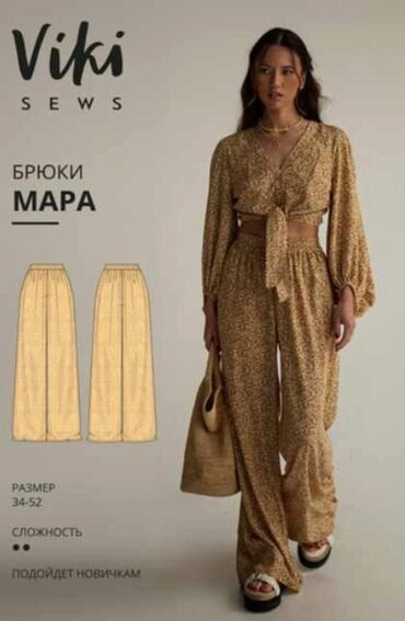 Курс Vikisews - Брюки Мара. Размер 42. Рост 162-168, автор Вика Ракуса. Выкройка брюк прямого силуэта, большого объема. В боковых швах функциональные карманы. Пояс широкий притачной, с эластичной тесьмой внутри. Тесьма закреплена в поясе двумя строчками. Верхний край пояса расположен на естественной линии талии. Длина брюк ниже уровня щиколоток.