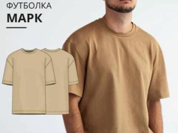 Выкройка мужской футболки большого объема, прямого силуэта. Линия плеча спущенная. Рукав втачной, короткий. Вырез горловины круглый, обработан бейкой. Длина футболки до линии бедер. Примерное время пошива – 1 день.