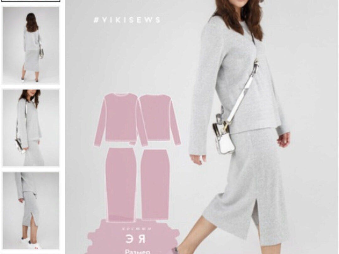 Выкройка уютного трикотажного комплекта, состоящего из юбки и джемпера.