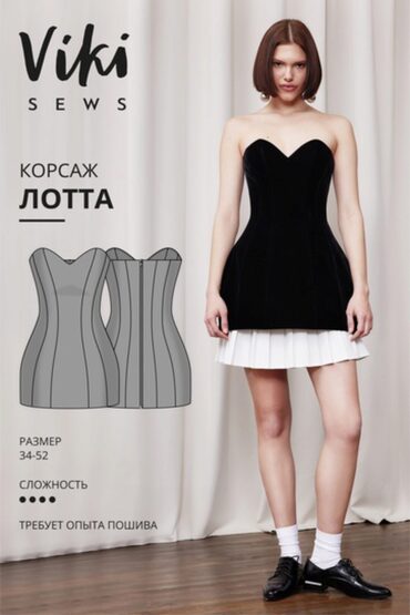 Курс Vikisews - Корсаж Лотта. Размеры 34-52. Рост 162-168, автор Вика Ракуса. Выкройка корсажа приталенного силуэта, на притачной подкладке. Корсаж малого объема в области лифа и умеренного объема в области бедер, с рельефами. Вдоль рельефов на деталях переда и спинки и по низу изделия настрачивается регилин. На подкладку изделия горизонтально настрочены 2 ряда кулисок, в которые вставлен регилин. Декольте глубокое, фигурной формы. Застежка на разъемную молнию в среднем шве спинки. Длина корсажа ниже линии бедер.