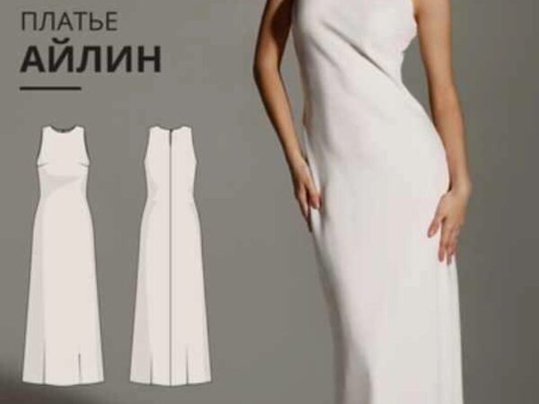 Выкройка платья малого объема, прилегающего силуэта, отрезное по линии талии, на тонких бретелях с регулятором высоты. Платье в бельевом стиле, корсетного типа с отрезными чашками из бельевого поролона. Прилегание по переду и спинке достигается рельефами. Нижняя часть платья выкроена по косой. В
