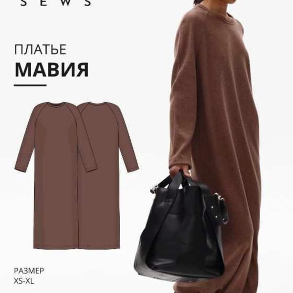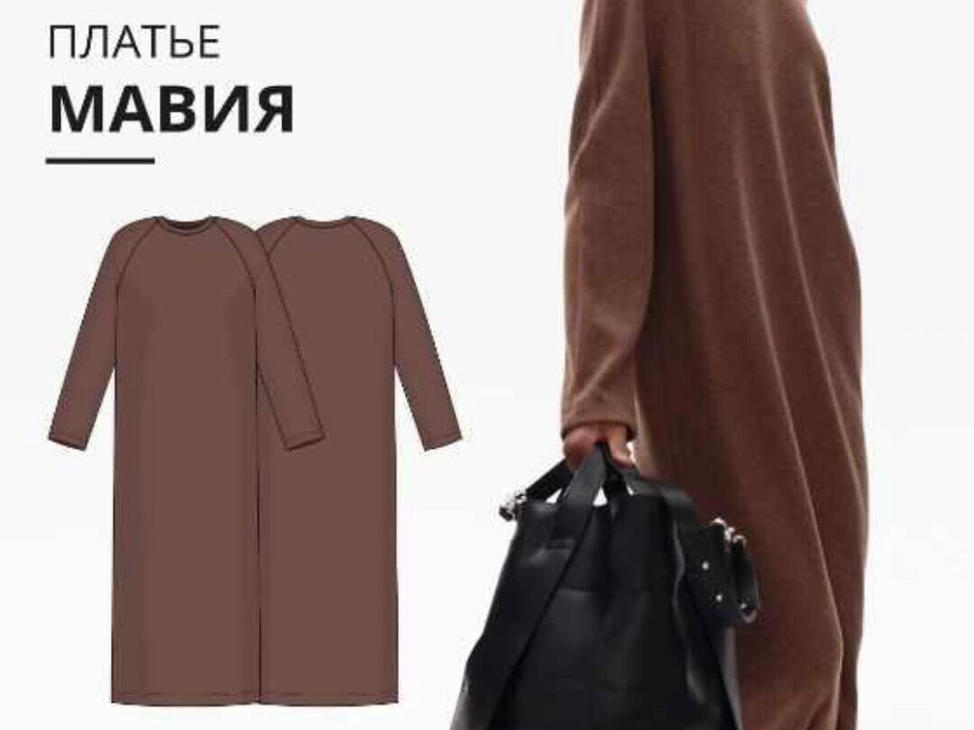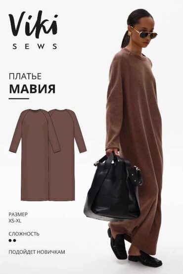 Курс Vikisews - Платье Мавия. Размер M-L. Рост 162-168., автор Вика Ракуса. Выкройка платья большого объема, прямого силуэта. Вырез горловины округлой формы, обработан бейкой. Рукав реглан, умеренного объема, заужен книзу. Длина платья до щиколотки.