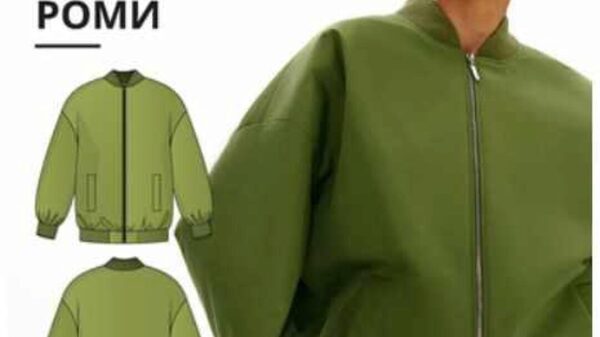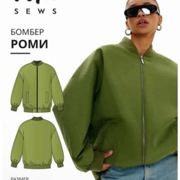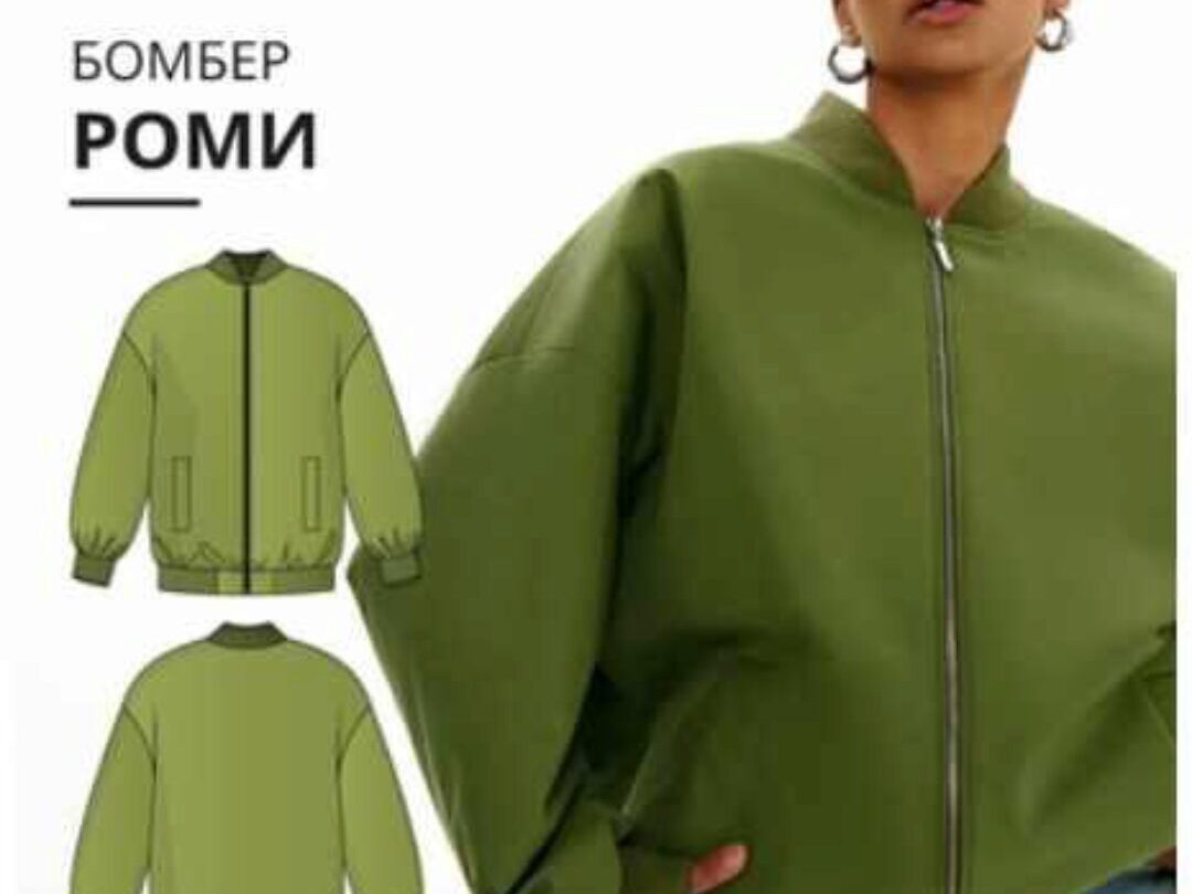 Курс vikisews - Роми бомбер. Размер XS-XL. Рост 162-168, автор Вика Ракуса. Выкройка бомбера большого объема, прямого силуэта, на притачной подкладке. На детали переда прорезные карманы с втачными листочками. Горловина округлой формы. Воротник-стойка выполнен из плотного фактурного трикотажа. Рукав рубашечный, длинный, с притачной манжетой из плотного фактурного трикотажа. Низ изделия обработан притачным поясом из плотного фактурного трикотажа. Застежка бомбера на разъемную молнию. Длина изделия ниже линии бедер.