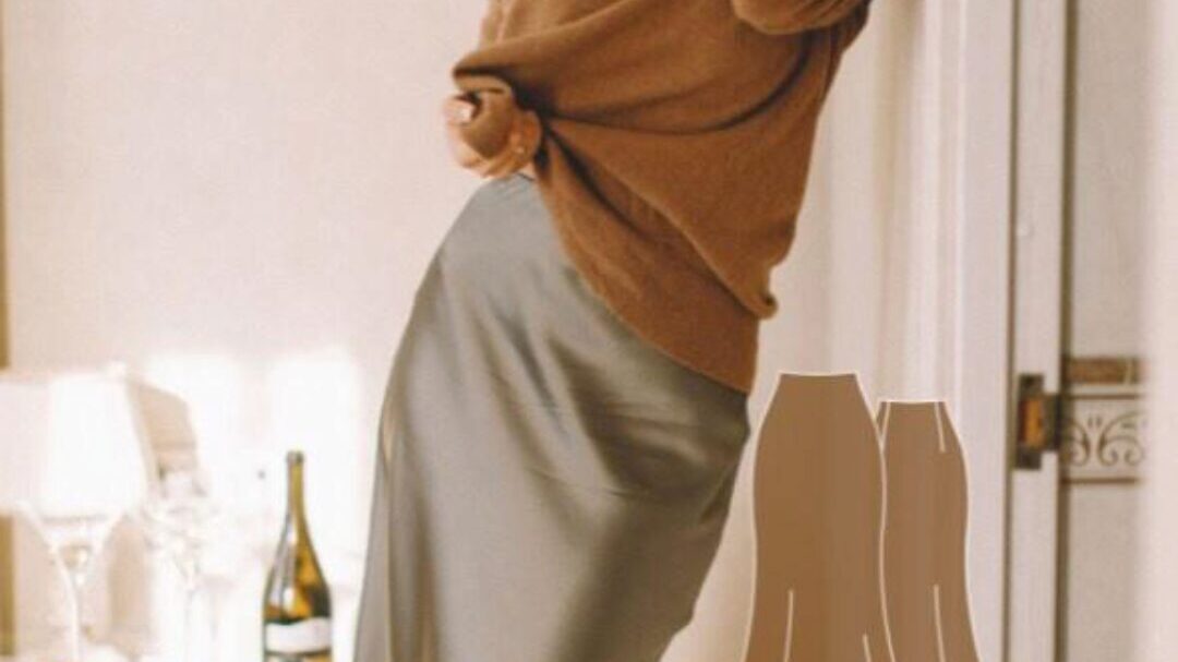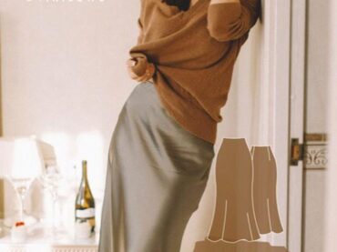 Выкройка юбки малого объема, легкого трапециевидного силуэта. Силуэт юбки образуется за счет косого кроя. На притачном поясе-резинке. В юбке использована люксовая обработка без использования оверлока: французским и московским швами. Длина изделия выше щиколотки.