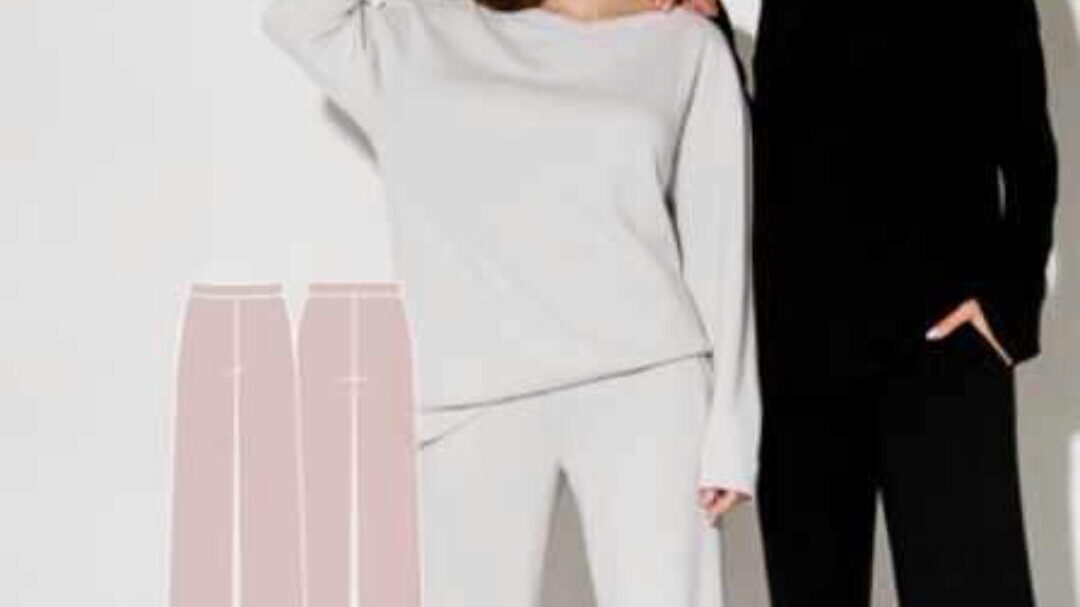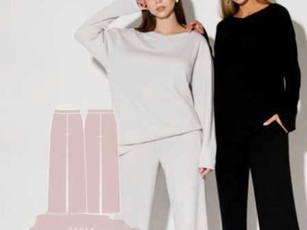 Выкройка мягких, комфортных, свободных, ниспадающих брюк прямого силуэта. В боковых швах выполнены карманы. Притачной пояс-обтачка со вставленной внутрь резинкой. Для модели подойдет пластичный вязаный трикотаж. Модель Валерия: ОГ 84, ОТ 64, ОБ 97, рост 168. Выбранный размер: M. Модель Настя: ОГ