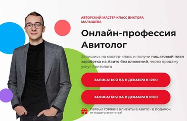 Кому подойдет курс: Новичку, который хочет освоить прибыльную и перспективную профессию Авитолога и начать зарабатывать онлайн Соискателю, который ищет работу в крупном, стабильном, развивающемся рекламном агентстве Маркетологу, который хочет освоить новые инструменты для продвижения своих услуг и