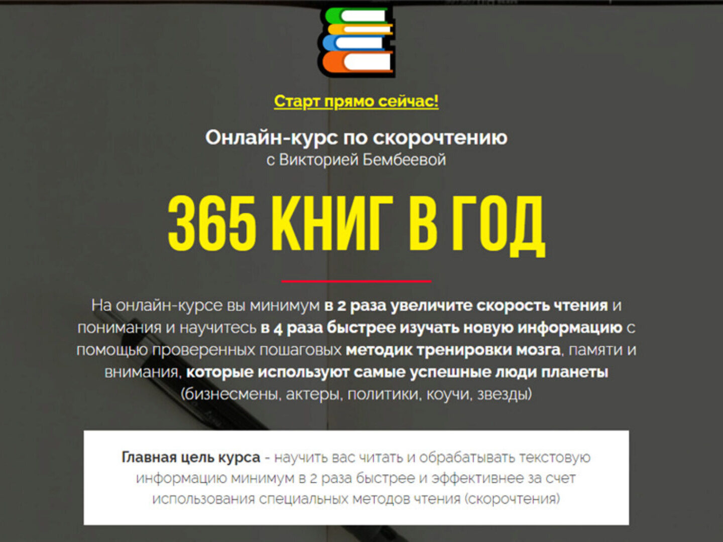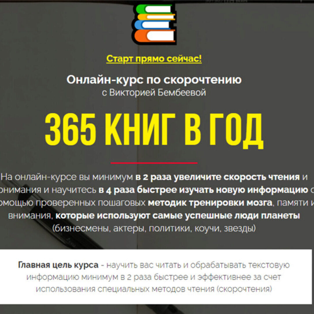Виктория Бембеева «Онлайн-курс по скорочтению. 365 книг в год. Тариф - Могу сам» слив скачать