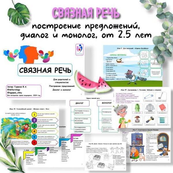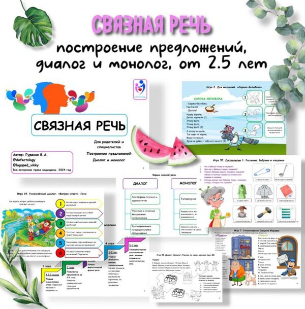 Курс Defectology - Связная речь, автор Виктория Гуренко. для родителей и специалистов, для детей от 2-2.5 лет (есть задания и для малышей, и для неговоряшек)