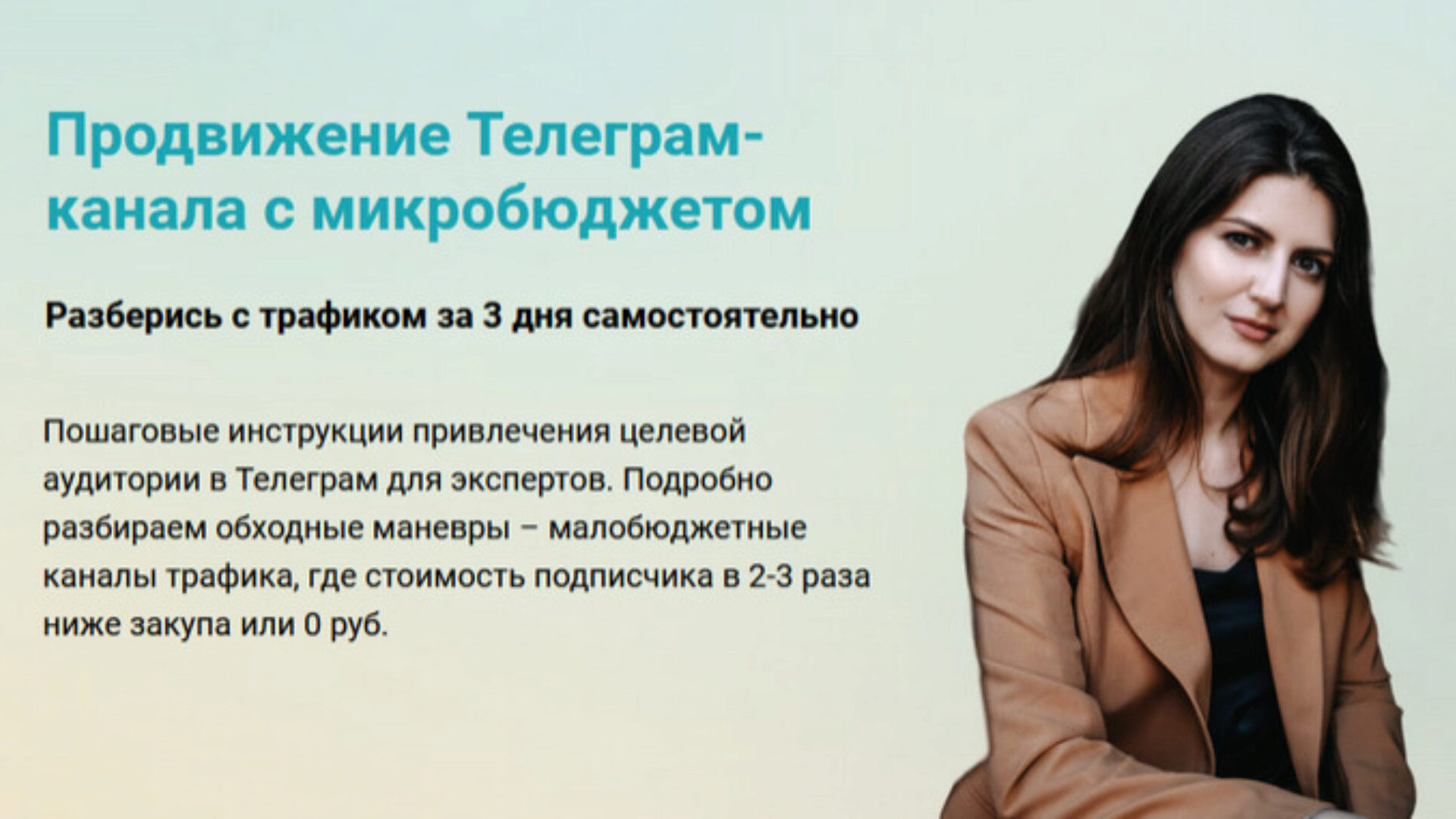 Курс Продвижение Телеграм-канала с микробюджетом, автор Виктория Гурина. Пошаговые инструкции привлечения целевой аудитории в Телеграм для экспертов. Подробно разбираем обходные маневры – малобюджетные каналы трафика, где стоимость подписчика в 2-3 раза ниже закупа или 0 руб.