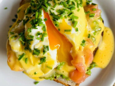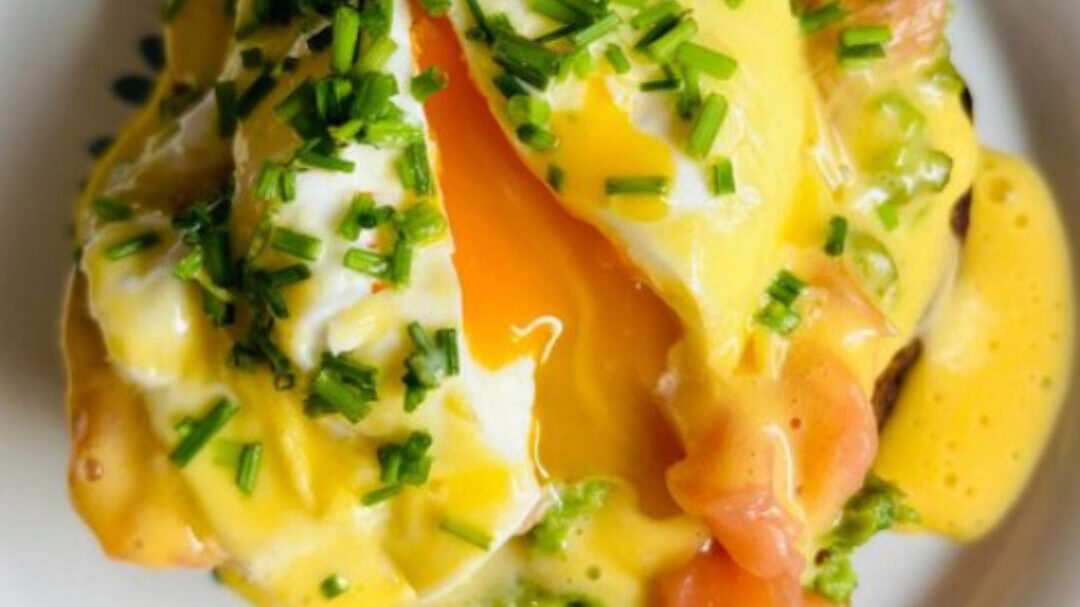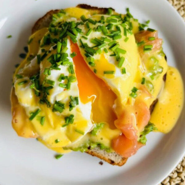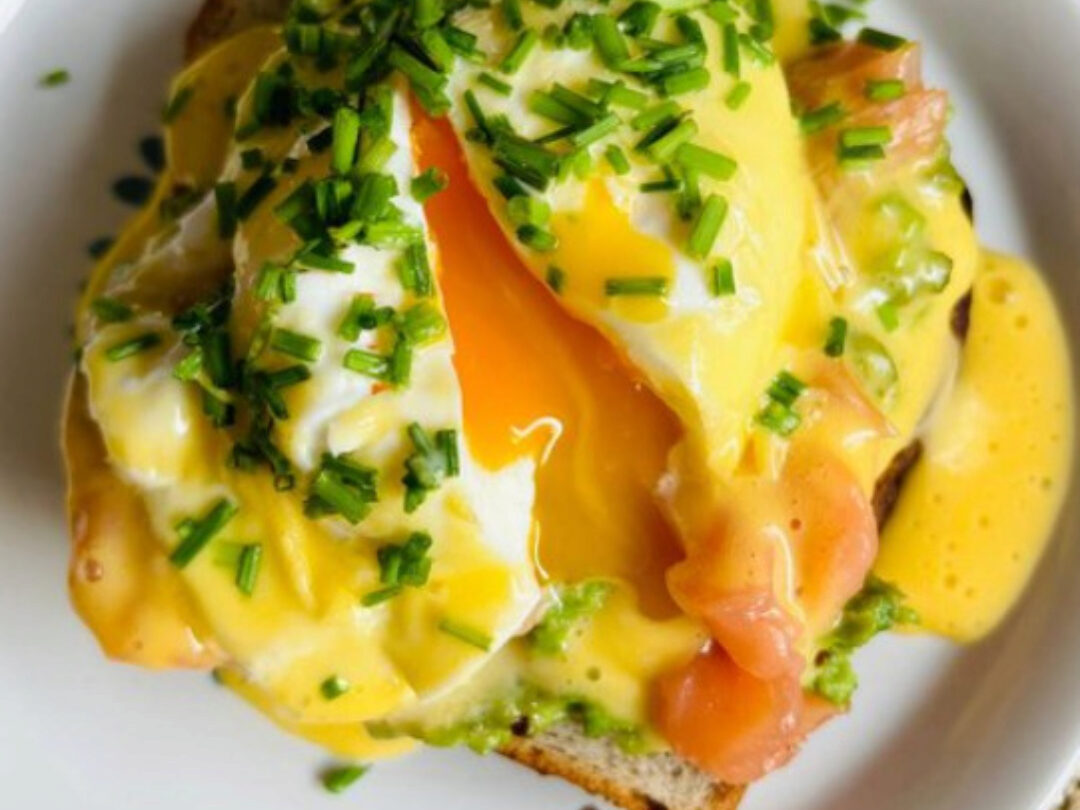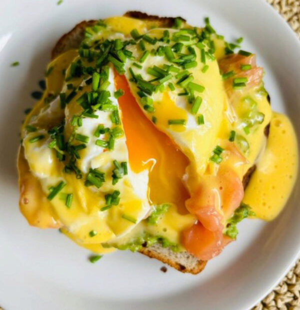 • Пашот + авокадо тост + малосольная рыба + соус голланьез