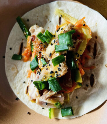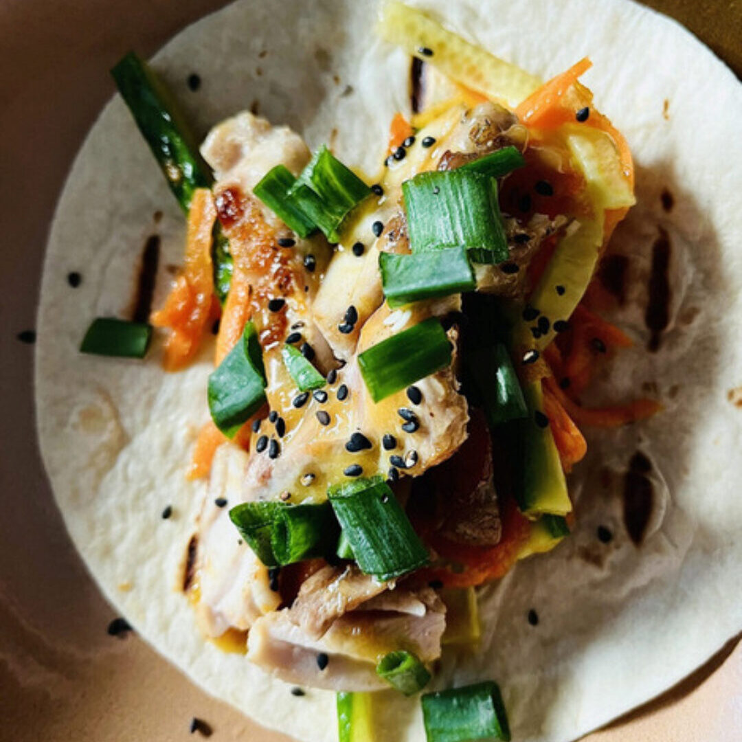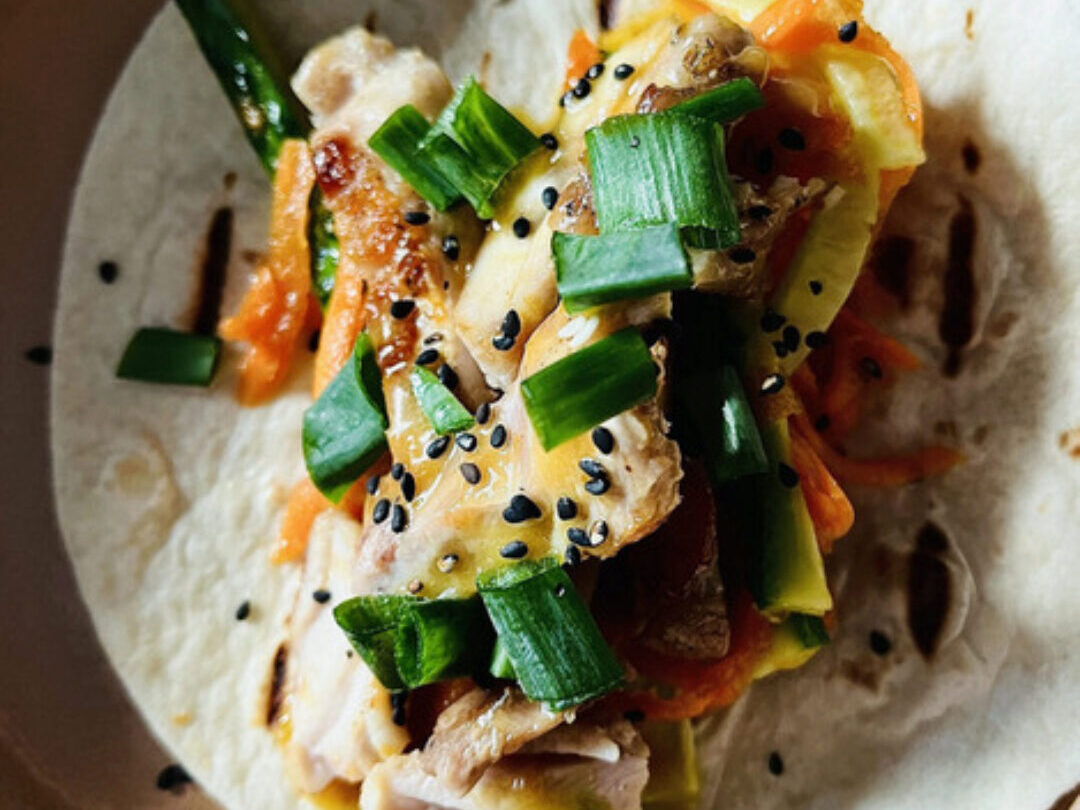Булгур с овощами, травами и белой рыбой в имбирном соусе