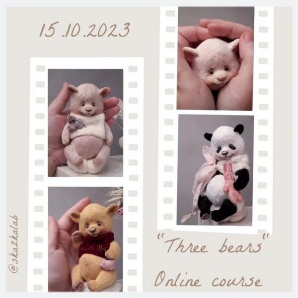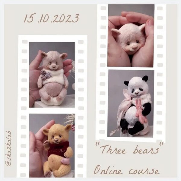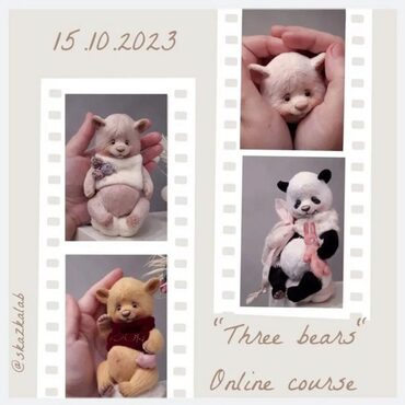 Курс Три медведя, автор Виктория Макарова. В ходе МК мы создадим трех медведей: няшку, панду и Винни. Все мишки ростом 16 см, из вискозы, набиты опилками и не только) Продумаем и создадим образ, сошьем маленьких друзей для наших мишек. Вполне реально, что в процессе добавим ещё пару персонажей